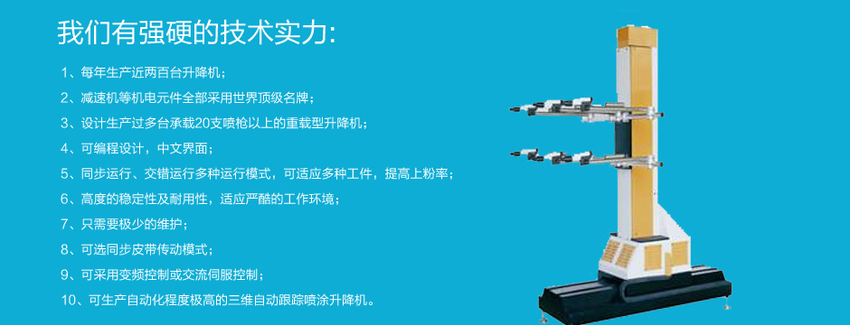 力恒機(jī)電設(shè)備有限公司是一家以生產(chǎn)涂裝設(shè)備為主要業(yè)務(wù)的公司.主營(yíng)行業(yè):靜電噴粉設(shè)備;熱潔環(huán)保爐;(碳化爐);數(shù)字智能升降機(jī)(往復(fù)機(jī));氟碳噴涂設(shè)備;小旋風(fēng)二級(jí)回收噴房;大旋風(fēng)二級(jí)回收噴房;魔術(shù)快速換色噴房;背包式單極回收噴房;水簾噴漆柜;全自動(dòng)噴粉設(shè)備...